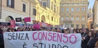 Associazioni delle donne in piazza Santi Apostoli a Roma contro la modifica al disegno di legge contro lo stupro che elimina il consenso esplicito