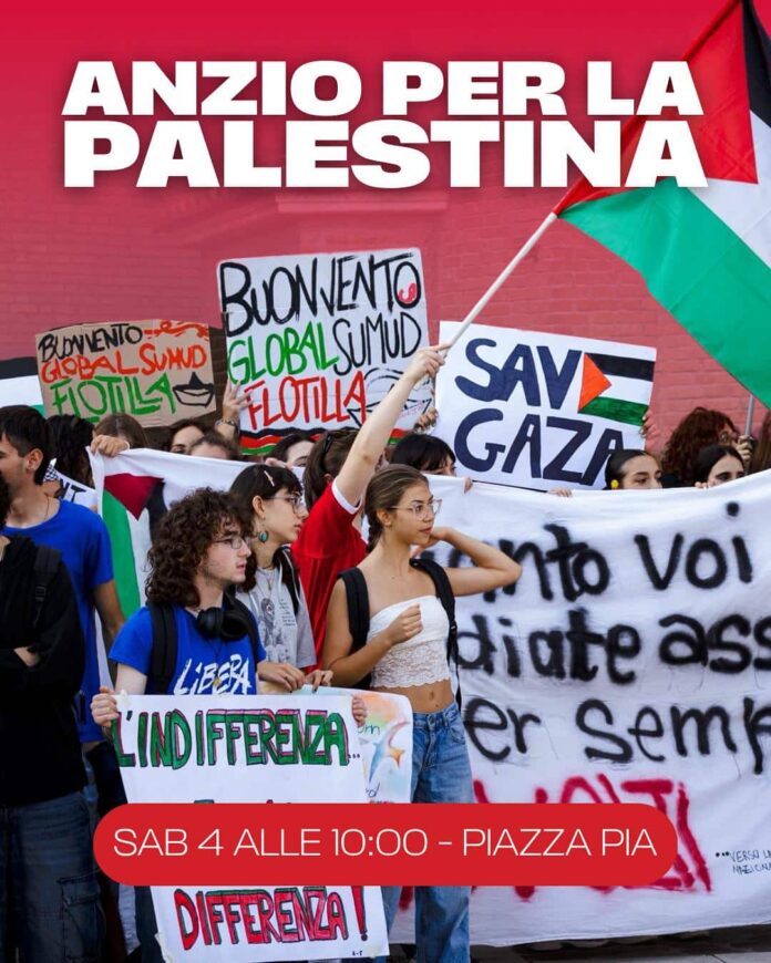Il 4 ottobre alle 10:00 in Piazza Pia ad Anzio studenti e semplici cittadini si ritroveranno per una manifestazione di solidarietà al popolo palestinese.
