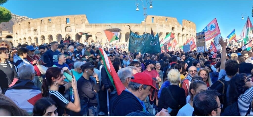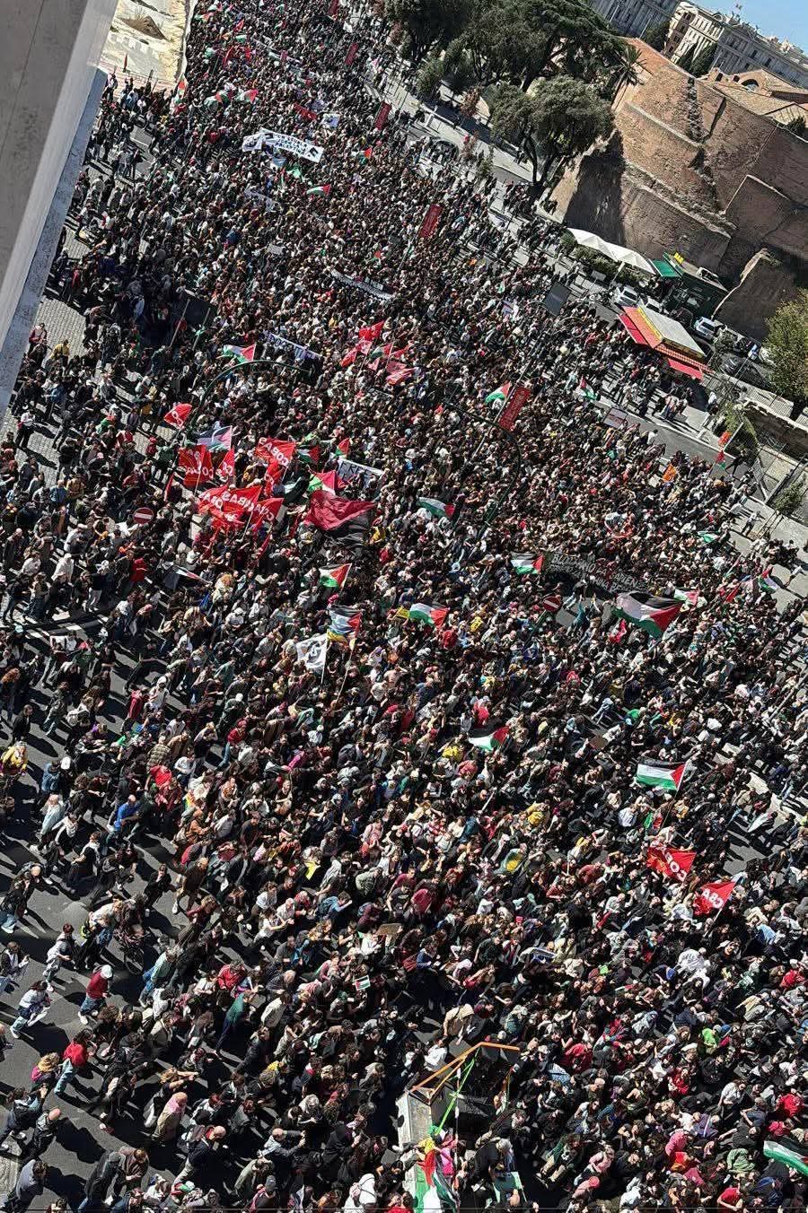 Un milione di persone è sfilato nella Capitale contro il genocidio in atto a Gaza, una mobilitazione oceanica per restare umani, in sostegno del popolo palestinese che sta subendo lo sterminio nell’indifferenza dei governi europei; per difendere la dignità della persona calpestata dalla vigliaccheria dei piu forti; per ripristinare il diritto internazionale.