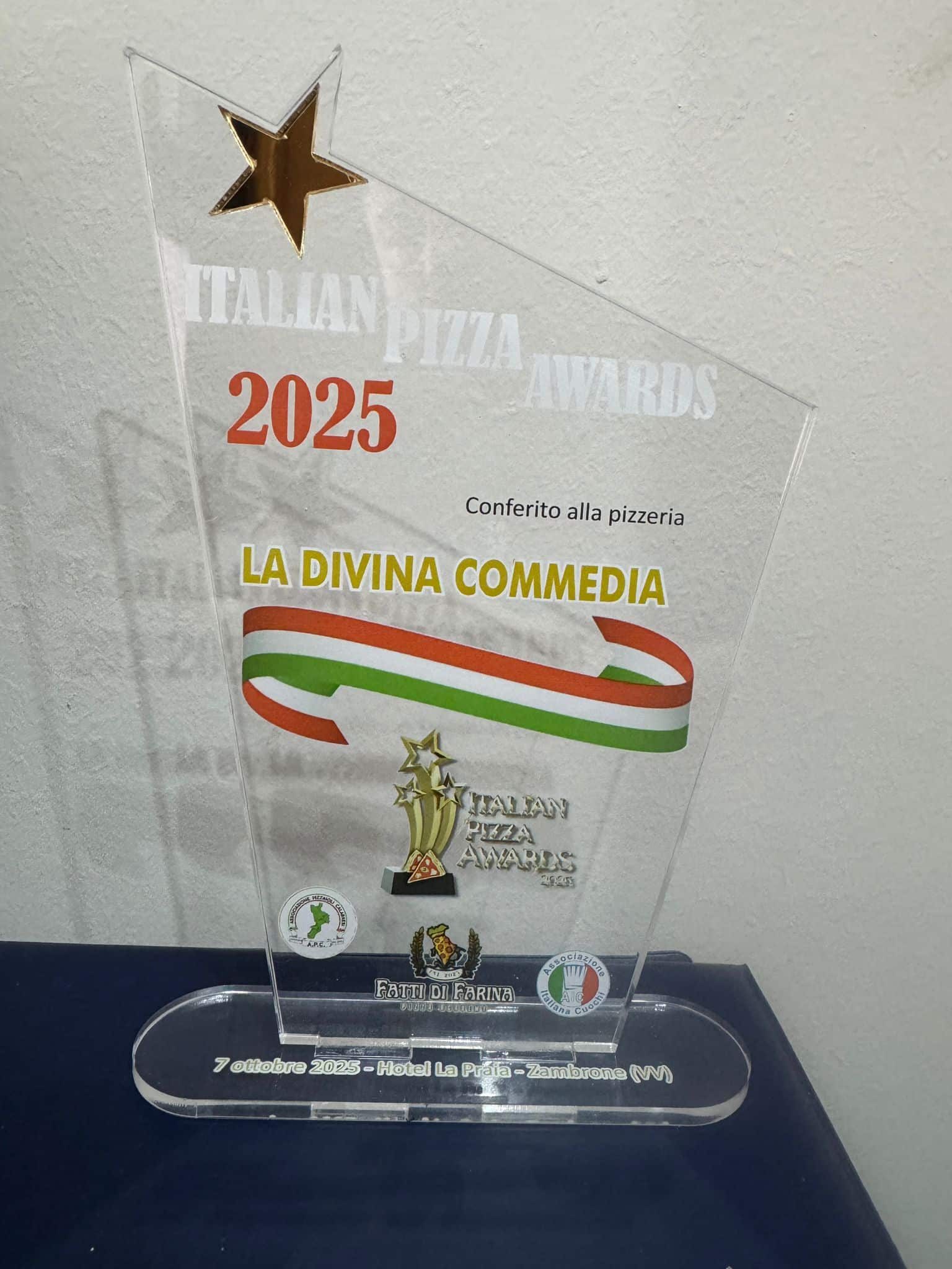 L’evento, organizzato dall’associazione pizzaioli calabresi “Apc” e “Fatti di farina pizza Academy” si è svolto nella splendida cornice dell’hotel “La Praia”, nella città di Zambrone in Calabria. Una manifestazione nata per celebrare l’eccellenza e il talento dei maestri pizzaioli che lavorano con passione e professionalità. Ad essere premiata anche la pizzeria “Divina Commedia”, tra 20 pizzerie d’Italia, assieme a 10 aziende del settore.