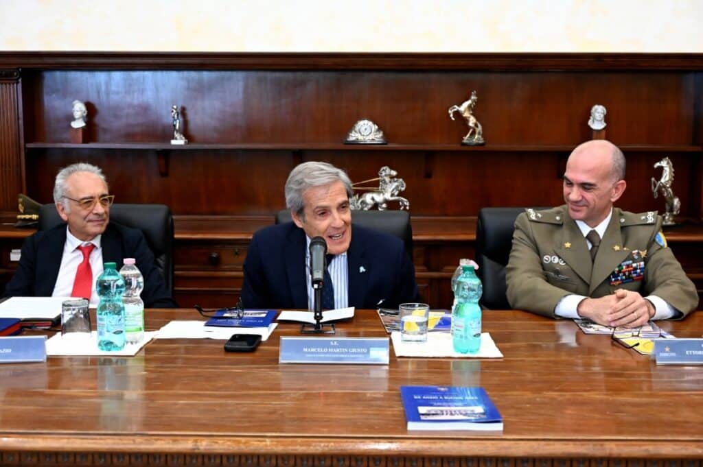 Dopo il benvenuto del Generale di Brigata Ettore Pontiroli, Comandante della Brigata Informazioni Tattiche, che nella sua sede custodisce la storica palazzina dell’ITALCABLE, si sono susseguiti i saluti dell’Ambasciatore argentino, del Sindaco di Anzio, Dott. Aurelio Lo Fazio, del presidente Nazionale dell’UNUCI, Generale di Brigata in ausiliaria Federico Sepe e del presidente del Club LIONS, Avv. Donato Gallina.