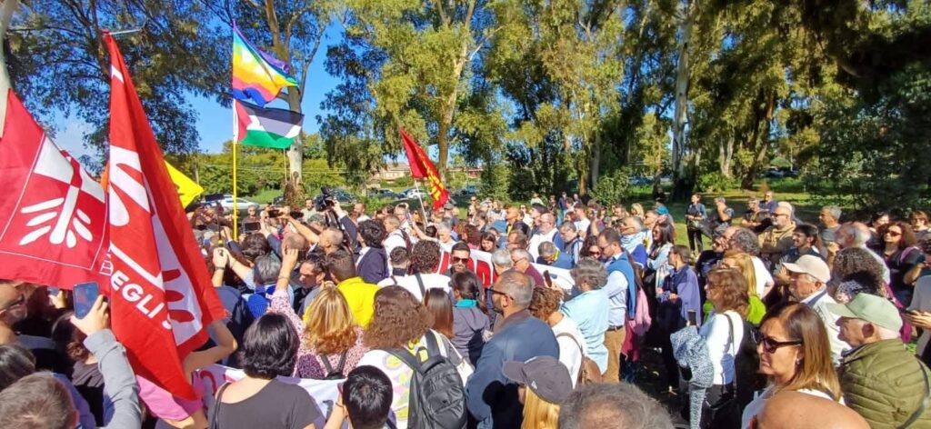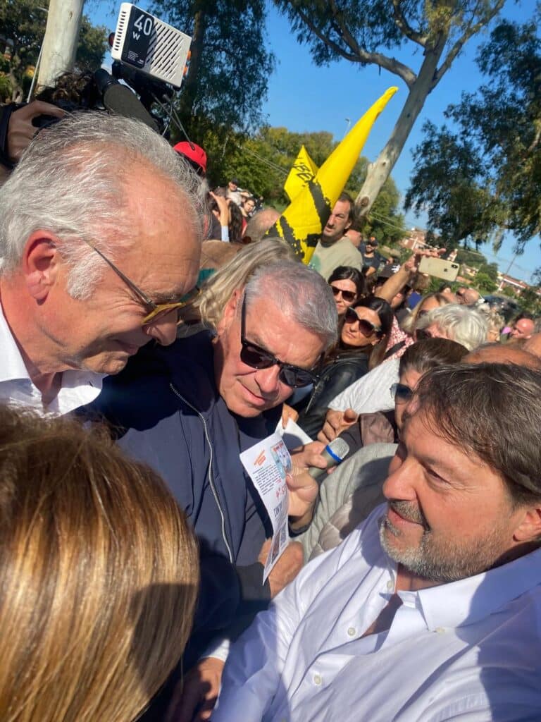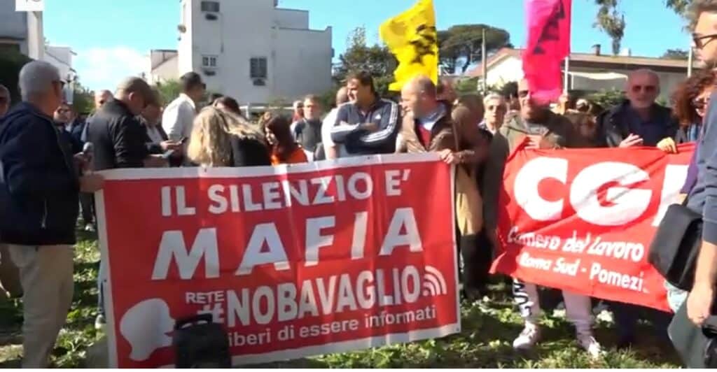 Centinaia di cittadini si sono radunati questa mattina davanti all’abitazione di Sigfrido Ranucci, per esprimere sostegno e vicinanza a lui e alla sua famiglia, dopo il grave attentato dinamitardo subito nella notte tra il 16 e il 17 ottobre. Quando sono state fatte saltare con un chilo di esplosivo l’auto del giornalista e di quella della figlia, parcheggiate davanti alla villetta a Campo Ascolano una frazione di Pomezia.