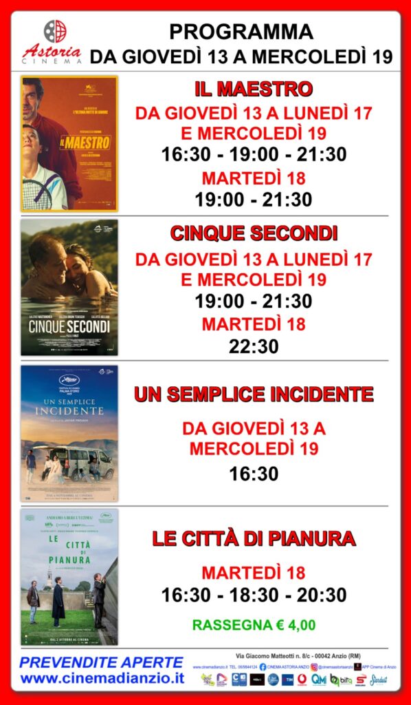 HomeAttualitàCinema Astoria Anzio Nettuno, i film in programma dal 13 al 19... Attualità Cinema Astoria Anzio Nettuno, i film in programma dal 13 al 19 novembre By Redazione 13 Novembre 2025 0 0 FacebookTwitterPinterestWhatsApp *Le notizie del quotidiano inliberauscita sono utilizzabili, a condizione di citare espressamente la fonte quotidiano inliberauscita e l’indirizzo https://inliberauscita.it FacebookTwitterPinterestWhatsApp Articolo precedenteDramma a Pomezia, 25enne si spara con la pistola del padreArticolo successivoAprilia, discarica di Santa Apollonia: il Consiglio di stato respinge il ricorso della società proponente Redazionehttp://www.inliberauscita.itPeriodico telematico di informazione fondato il 16 giugno 2011 Registrazione presso il tribunale ordinario di Velletri n°12/2011 Ultime Notizie Roma, Bimbo 7 anni investito da un’auto, salvato da un vigile 13 Novembre 2025 Nettuno, la segreteria del PD Combi fa gli auguri ai consiglieri Palma e Catanzani 13 Novembre 2025 Aprilia, discarica di Santa Apollonia: il Consiglio di stato respinge il ricorso della società proponente 13 Novembre 2025 Dramma a Pomezia, 25enne si spara con la pistola del padre 12 Novembre 2025 Giornalisti. Fnsi, il 28 novembre sciopero per il contratto 12 Novembre 2025 Carica altri