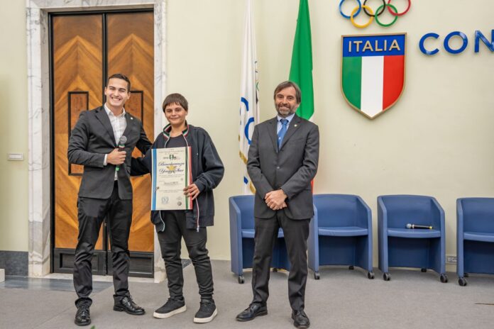 Un giovane talento apriliano premiato dall’Unione Nazionale Veterani dello Sport – Sezione ‘Virtus et Gloria’ al salone d’onore del CONI a Roma, nell’ambito dell’evento “Atleti dell’anno 2025” al quale ha partecipato anche il Presidente del CONI Luciano Buonfiglio.