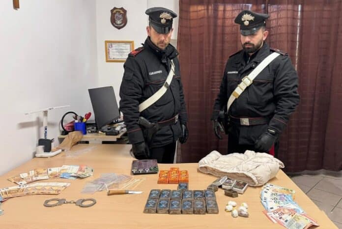 A seguito delle perquisizioni personali, veicolari e domiciliari, i militari hanno rinvenuto e sequestravano oltre 2 kg di hashish suddivisi in numerosi “panetti”, circa 33 gr di cocaina e la somma contante di 1980 euro, ritenuta provento dell’illecita attività, nonché materiale idoneo al confezionamento della sostanza stupefacente.