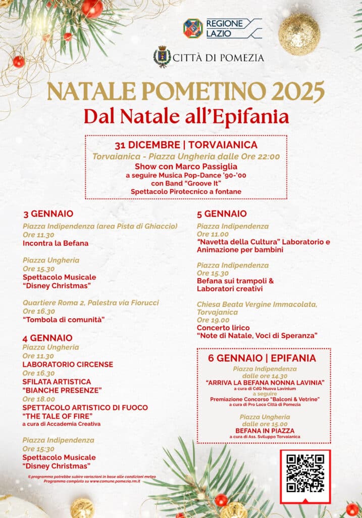 «Con “Natale Pometino 2025” vogliamo offrire alla nostra comunità e ai visitatori un periodo di festa ricco di opportunità culturali, sociali e di svago – dichiara il Sindaco Veronica Felici–. È un programma pensato per tutti, che valorizza i luoghi simbolo della città e rafforza il senso di appartenenza alla nostra comunità.»