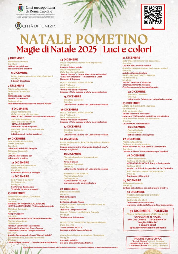 «Con “Natale Pometino 2025” vogliamo offrire alla nostra comunità e ai visitatori un periodo di festa ricco di opportunità culturali, sociali e di svago – dichiara il Sindaco Veronica Felici–. È un programma pensato per tutti, che valorizza i luoghi simbolo della città e rafforza il senso di appartenenza alla nostra comunità.»