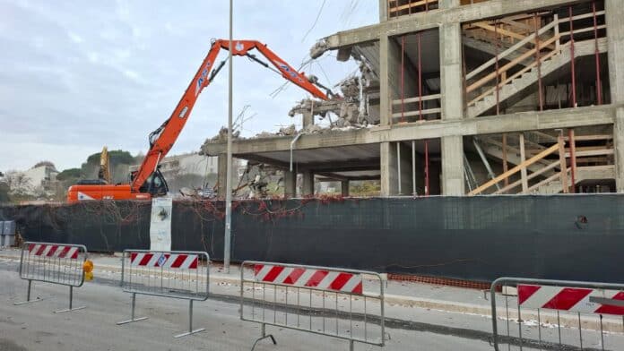 Quello a cui si sta assistendo in questi giorni alla costruenda scuola di via Olmata ha del tragicomico: una struttura i cui lavori sarebbero dovuti terminare nel novembre del 2024, come scritto sul cartello del cantiere, sono ancora in alto mare, il bello è che da qualche giorno stanno abbattendo un lato dello scheletro di cemento, perchè i lavori effettuati sembra non siano conformi al progetto. Quindi il direttore dei lavori, i tecnici tutti, non hanno notato che stavano realizzando cose difformi dal progetto?