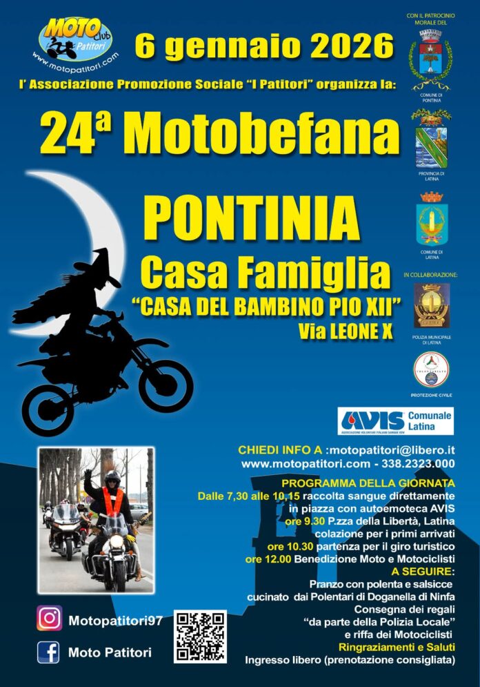 L’evento solidale, patrocinato dai Comuni di Latina e Pontinia e dalla Provincia di Latina, è organizzato dall’associazione di promozione sociale “I Patitori”, in collaborazione con la Polizia Locale di Latina, la Protezione civile e l’Avis di Latina