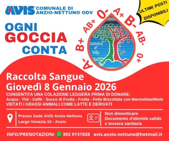 🩸RACCOLTA SANGUE DI GIOVEDÌ 8 GENNAIO