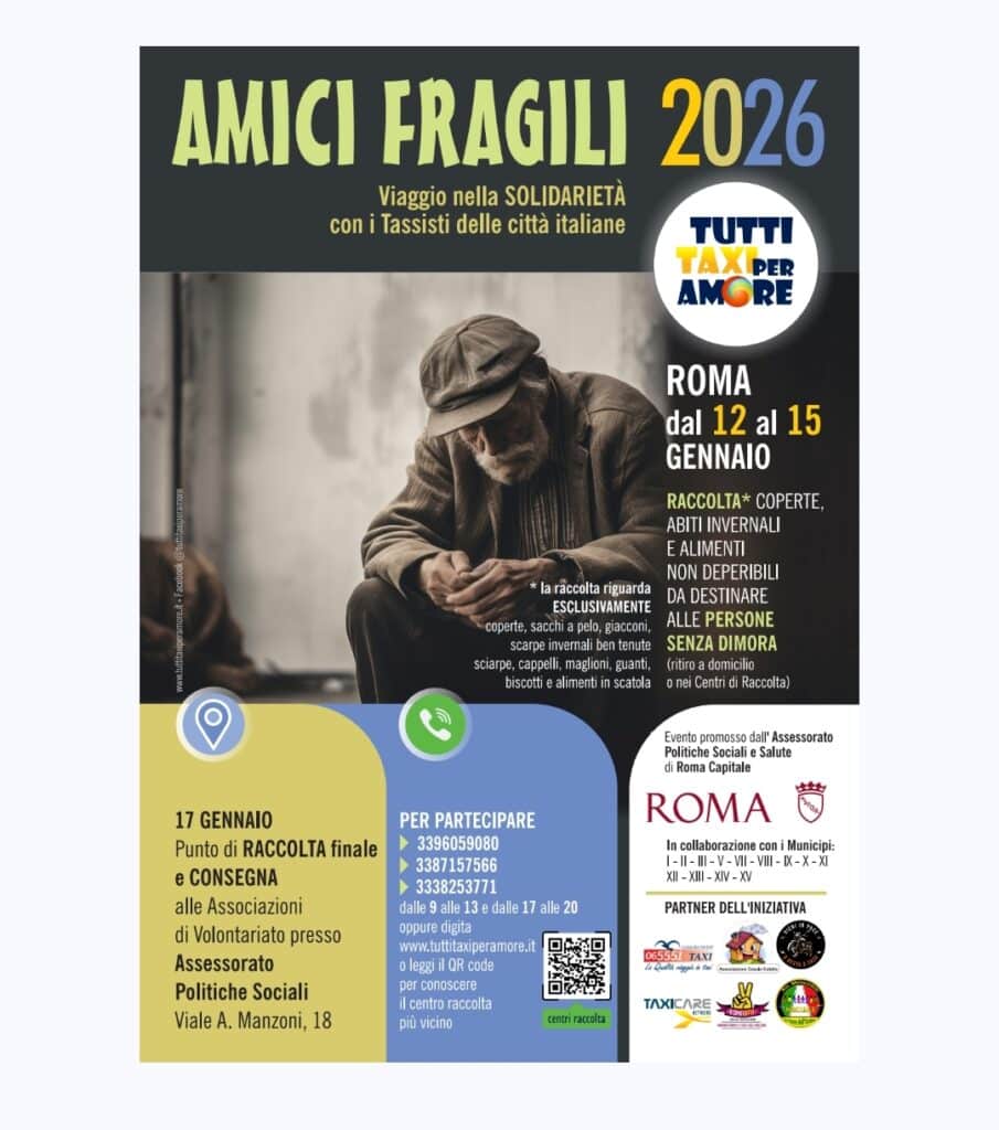 A rafforzare lo spirito dell’iniziativa, anche il presidente di Tutti Taxi per Amore, Marco Salciccia: “Abbiamo voluto rilanciare Amici Fragili come segno tangibile di vicinanza verso chi vive situazioni di estrema vulnerabilità. In inverno una coperta può rappresentare molto più di un semplice oggetto: è una necessità vitale che può fare la differenza tra disagio e sopravvivenza“.