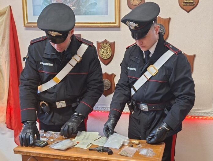 Successivamente, gli accertamenti sono stati estesi anche all’abitazione della giovane, dove i Carabinieri hanno identificato il convivente. A seguito della perquisizione domiciliare, i militari hanno rinvenuto e sequestrato ulteriore stupefacente tra cui, 34 grammi di hashish, 2,5 di marijuana e 300 grammi circa di sostanza da taglio, oltre a materiale per il confezionamento e un bilancino di precisione. I Carabinieri hanno anche rinvenuto una pistola, tipo revolver “Mondial” calibro 6, modello 1938, e per tale ragione hanno denunciato l’uomo per detenzione illecita di armi da fuoco.