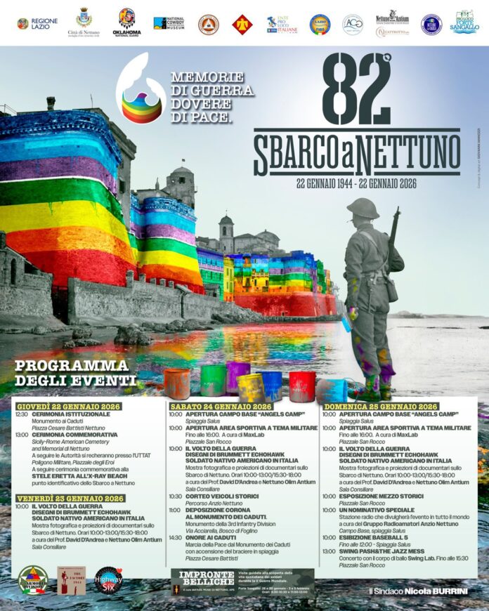 La nostra città si prepara a celebrare un momento di memoria collettiva con “Lo Sbarco a Nettuno”, la manifestazione ufficiale dedicata all’82° Anniversario dello Sbarco Alleato, in programma tra il 22 e il 25 gennaio.