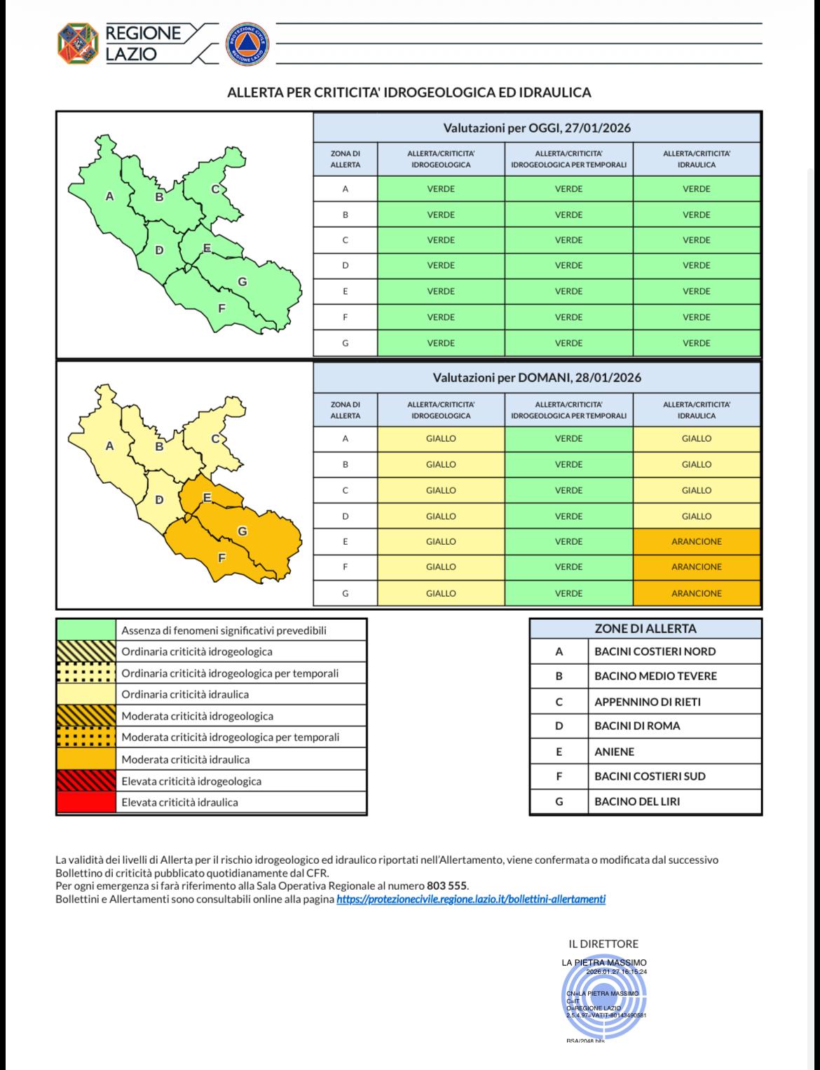 La protezione civile regionale per la Giornata di domani ha diratamato un’allerta meteo arancione, per il solo rischio idraulico. Il SIndaco di Nettuno, che invita i cittadini alla massima prudenza in ogni occasione, ha disposto l’attivazione della Centrale Operativa Comunale (COC) presso il Comando di Polizia Locale che si trova in viale della Vittoria, 2 al fine di assicurare, nell’ambito del territorio del Comune di Nettuno, la direzione e il coordinamento del pronto intervento e l’attivazione delle necessarie funzioni di supporto indicate nel piano di protezione civile comunale fino a cessata emergenza con raccomandazione alla popolazione di limitare al massimo la mobilità, fare attenzione all’impegnare i piani interrati e seminterrati nelle zone di forte allagamento, evitare di transitare nelle strade con maggior pendenza a rischio allagamento, non sostare sotto alberi di alto fusto, tenersi lontani dalle banchine adiacenti al mare per il pericolo delle mareggiate.