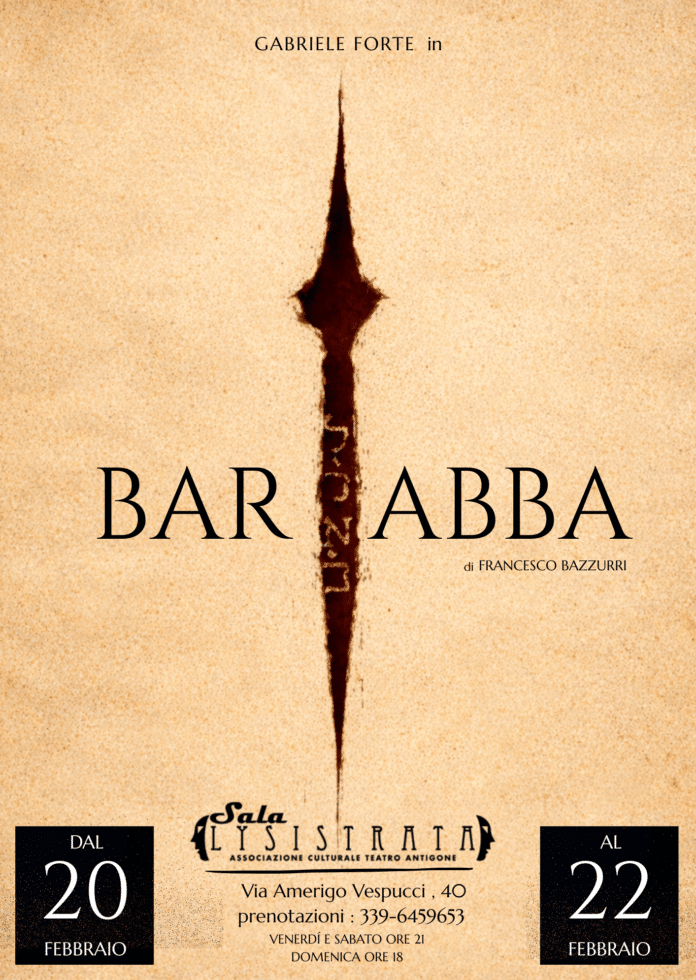 In questo intenso monologo, la figura dell’uomo scelto dalla massa si stacca dall’episodio evangelico per diventare carne viva, coscienza inquieta, domanda aperta. Lasciato andare per decisione altrui, Barabba si ritrova a portare il peso di una libertà che non ha chiesto e di una morte che non gli apparteneva.