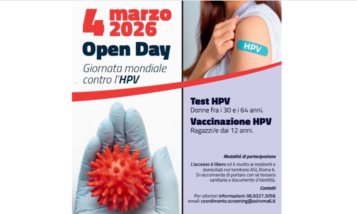 In occasione della Giornata Mondiale per la Lotta contro il Papillomavirus Umano (HPV), la ASL Roma 6 promuove una Campagna straordinaria di prevenzione, con un Open Day dedicato al Test HPV e alla vaccinazione anti‑HPV, offerti gratuitamente e ad accesso libero.