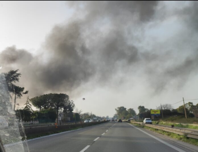 Un vasto e viilento incendio è scoppiato questo pomeriggio attorno alle 16,00 a ridosso della Pontina tra Campoverde ed Aprilia. Un densa colonna di fumo nero visibile a chilometri di distanza, dovuta alla combustione di materiale plastico,forse pneumatici, che sembra fosse collocata all’interno di una baracca. sul posto i Vigili del fuoco del distaccamento di Aprilia.