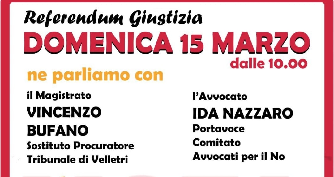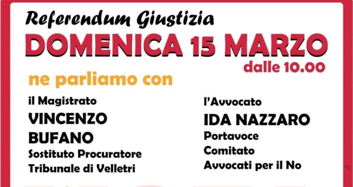 Nel corso della mattinata interverranno il magistrato Vincenzo Bufano, sostituto procuratore presso il Tribunale di Velletri, e l’avv. Ida Nazzaro, portavoce del Comitato Avvocati per il No. A moderare l’incontro sarà Claudio Pelagallo, giornalista della Rete #NoBavaglio.