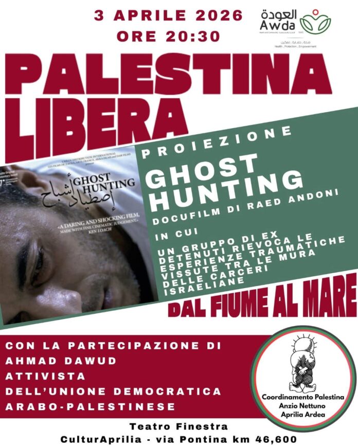 Il coordinamento ANAA – Anzio, Nettuno, Aprilia, Ardea Vi invita il 3 Aprile al Teatro Finestra di Aprilia alla proiezione di “Ghost Hunting”, un docufilm palestinese che non lascia spazio all’indifferenza.