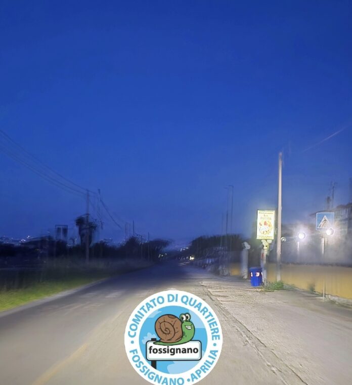 Nonostante l’incontro che ci è stato il 30 Marzo con le Commissarie Straordinarie e l’Architetto Pennini per il settore Lavori Pubblici non ci è stato ancora alcun riscontro in merito alla richiesta di ripristino dell’illuminazione pubblica di via Fossignano, la via principale del Quartiere.