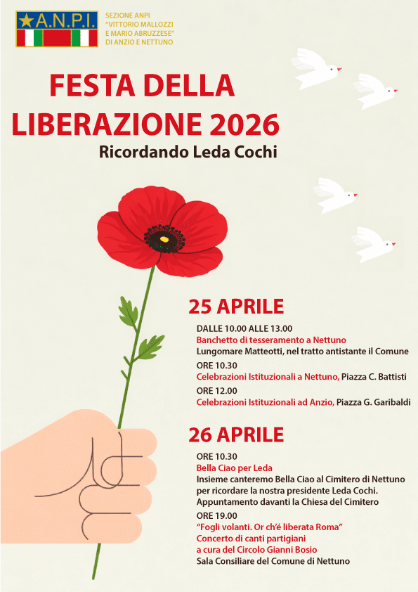 La Festa della Liberazione si avvicina e come sezione ANPI di Anzio e Nettuno anche quest’anno abbiamo organizzato tutta una serie di iniziative per condividere insieme i valori di questa importante giornata del nostro “calendario civile” repubblicano.