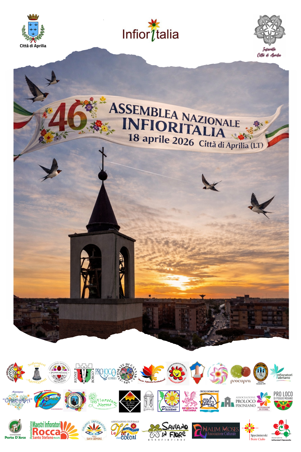 Oggi 18 aprile 2026, la città di Aprilia accoglierà con orgoglio l’Assemblea Nazionale dell’Associazione Infioritalia, che vedrà la partecipazione di oltre cento maestri infioratori provenienti da quasi trenta città e paesi infioratori di tutta Italia.