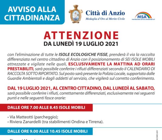 Anzio. De Angelis: “Da giovedì prossimo saranno regolarmente ritirati i rifiuti indifferenziati”