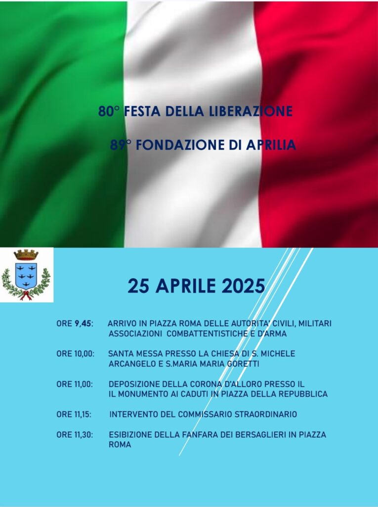 In tutto il paese si celebrano gli 80 anni dalla Liberazione. L’anniversario della liberazione d’Italia è la festa nazionale della Repubblica Italiana, che si celebra ogni 25 aprile per commemorare la liberazione d’Italia dall’occupazione nazista e dal fascismo, a coronamento della resistenza italiana al nazifascismo.