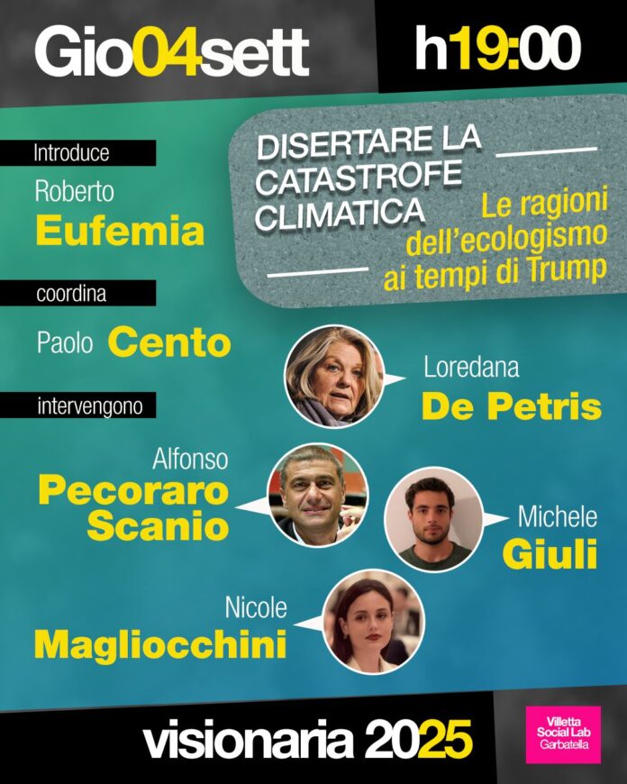 Nell’era di Trump e del negazionismo climatico si ritroveranno a discutere,coordinati dal Direttore della Rivista Articolo 9 Paolo Cento, l’ex ministro Pecoraro Scanio la Senatrice Loredana De Petris e i rappresentanti della Rete Ecodigital e Michele Giuli di Ultima Generazione.