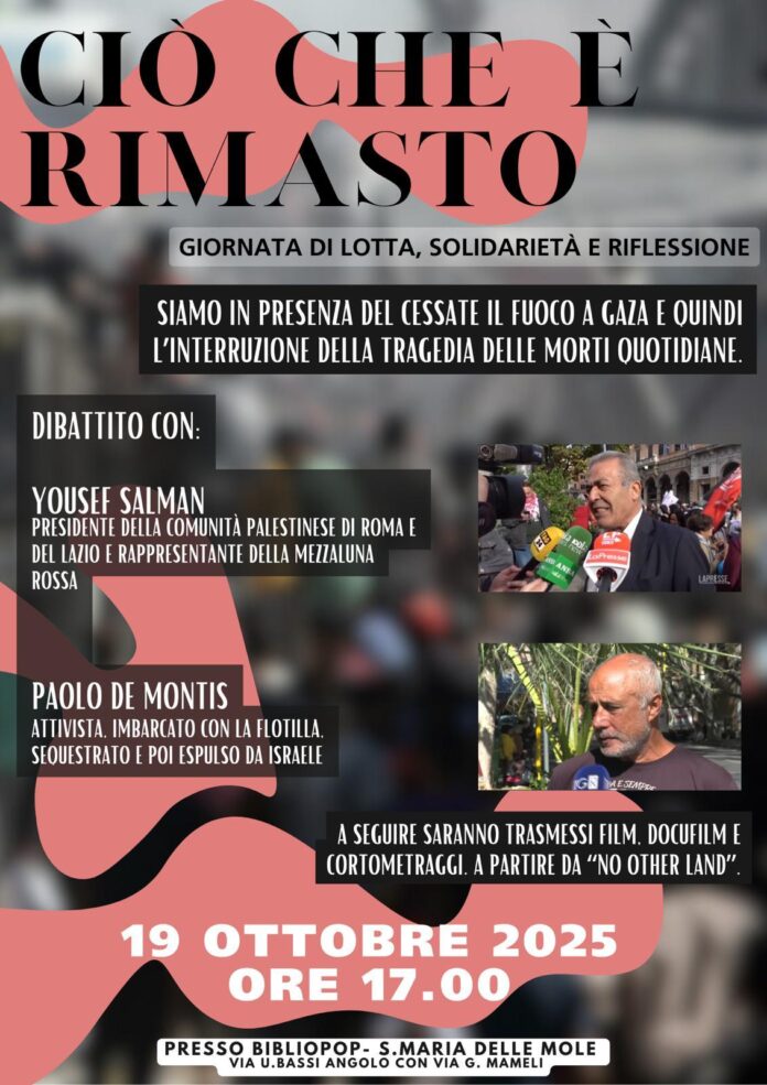 Marino. S. Maria delle Mole. A Bibliopop Domenica 19, alle ore 17.00 giornata di lotta, solidarietà e riflessione