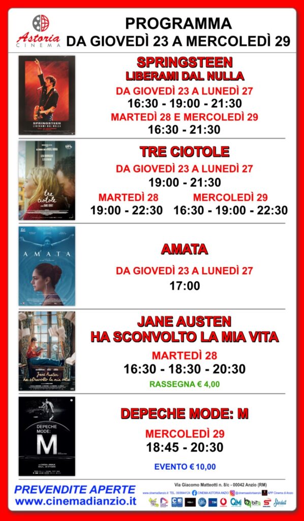 HomeAttualitàCinema Astoria, i film in programma ad Anzio e Nettuno dal 23... AttualitàCinemaEventi Cinema Astoria, i film in programma ad Anzio e Nettuno dal 23 al 29 ottobre By Redazione 23 Ottobre 2025 0 0 FacebookTwitterPinterestWhatsApp *Le notizie del quotidiano inliberauscita sono utilizzabili, a condizione di citare espressamente la fonte quotidiano inliberauscita e l’indirizzo https://inliberauscita.it FacebookTwitterPinterestWhatsApp Articolo precedenteAnzio, 24 ottobre “Vivere da anziani a Lavinio Stazione” Tavolo di confronto, organizzato da ARCI ItacaArticolo successivoLavoratori della Leonardo, stop vendita armi a Israele Redazionehttp://www.inliberauscita.itPeriodico telematico di informazione fondato il 16 giugno 2011 Registrazione presso il tribunale ordinario di Velletri n°12/2011 Ultime Notizie Riapre venerdì il giardino di via delle Ginestre, a Lavinio 23 Ottobre 2025 L’Anzio Scherma al Circuito Europeo di Napoli 23 Ottobre 2025 Comune di Anzio, Approvato il nuovo regolamento per i centri di raccolta, verso l’informatizzazione dei servizi 23 Ottobre 2025 Roma. Perseguita commessa per mesi, tunisino in manette 23 Ottobre 2025 Santa Maria delle Mole: Antenna 5G sul campanile della Chiesa 23 Ottobre 2025 Carica altri