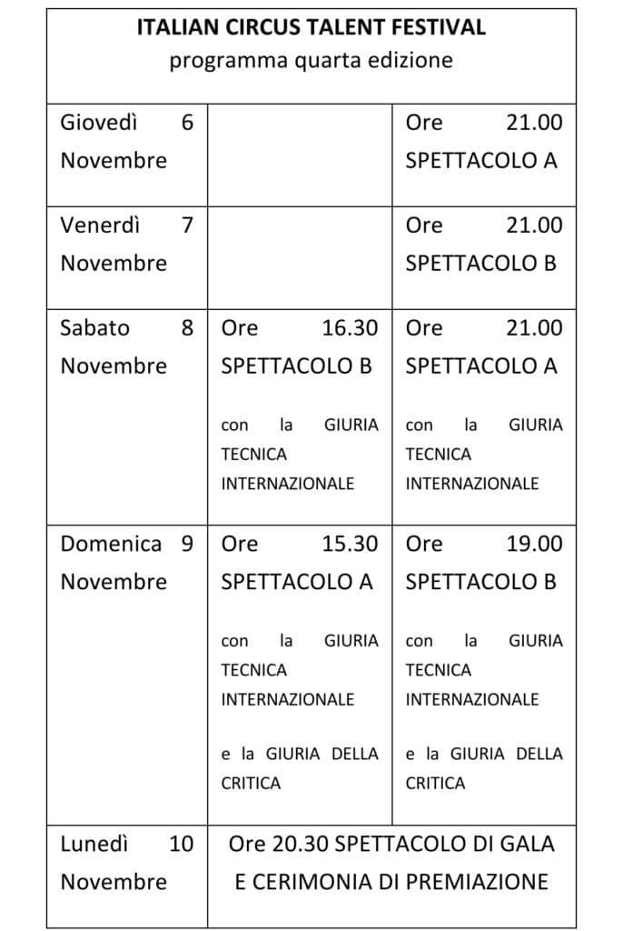 Una Giuria Tecnica Internazionale per assegnare giusto merito e particolare attenzione ai giovani artisti ammessi alla competizione della quarta edizione dell’Italian Circus Talent Festival. Si concretizza l’obiettivo di porgere ai nuovi talenti del Circo visibilità ed opportunità straordinarie. Debutto: Giovedì 6 Novembre ore 21.00 a Latina, via Rossetti, area del mercato settimanale.