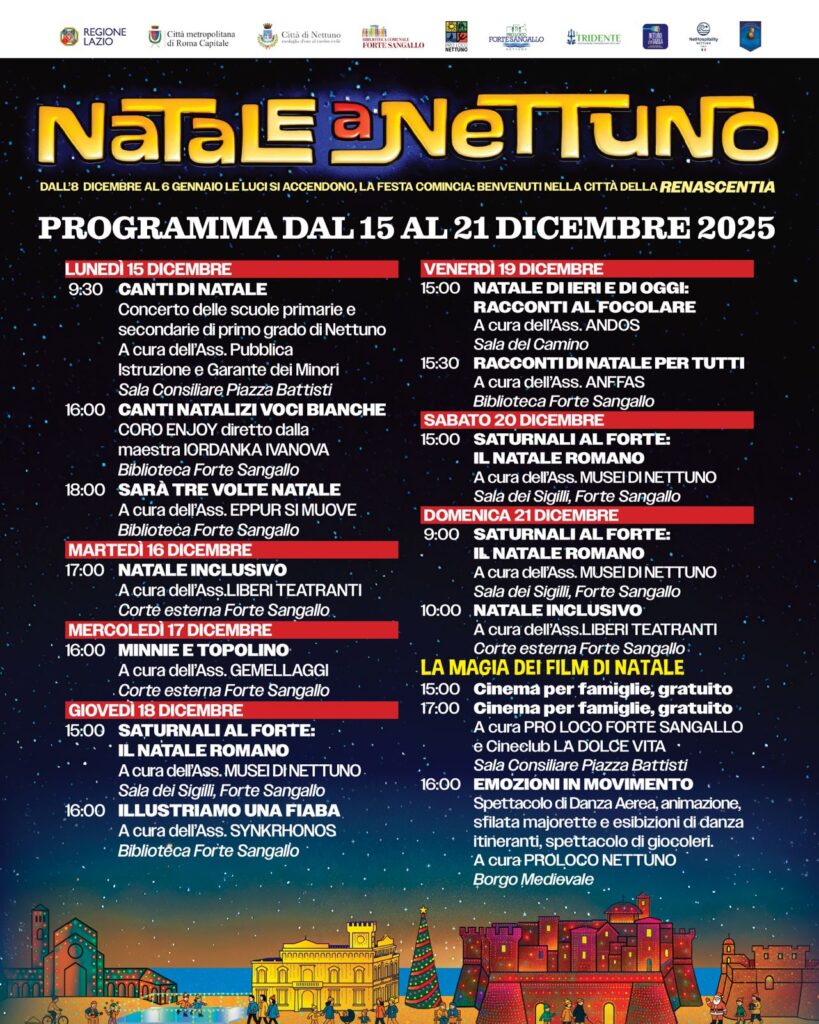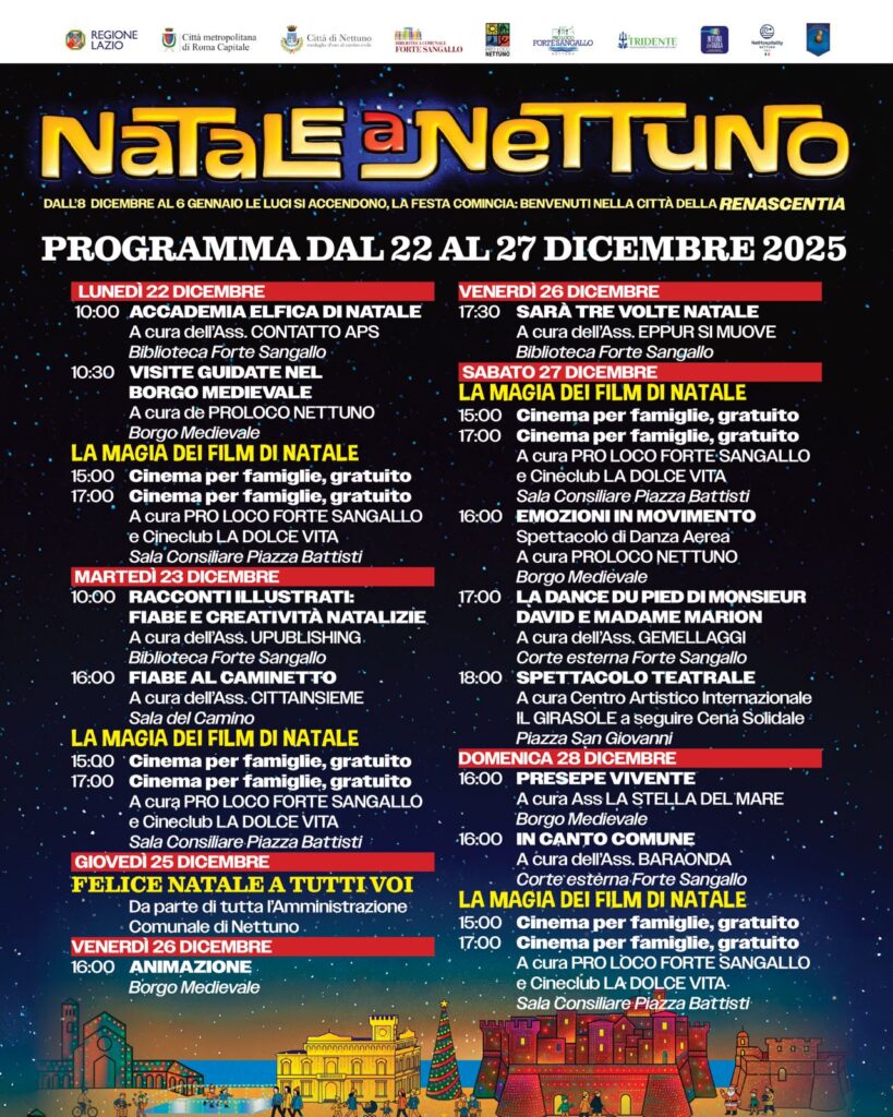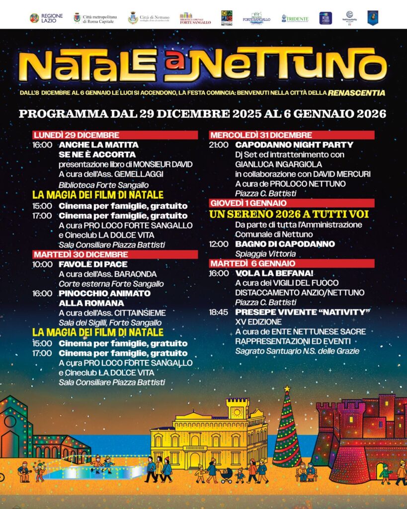 LA MAGIA DEL NATALE A NETTUNO: FILM, FIABE, CANTI E CAPODANNO IN PIAZZA
