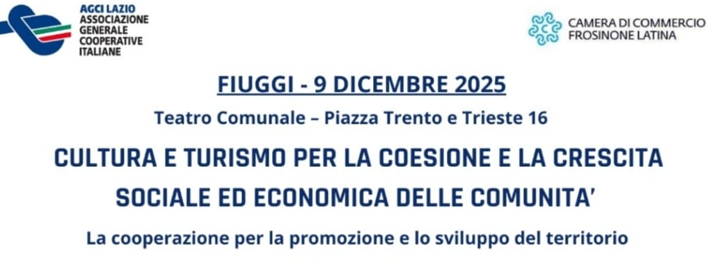 Si svolgerà *martedì 9 dicembre 2025 alle ore 15.00 presso il Teatro comunale di Fiuggi* (Frosinone) in piazza Trento Trieste 16, il convegno *“Cultura e turismo per la coesione e la crescita sociale ed economica delle comunità” – La cooperazione per la promozione e lo sviluppo del territorio,* organizzato da *AGCI Lazio, l’Associazione Generale Cooperative Italiane, che rappresenta e riunisce oltre 400 imprese cooperative della regione.*