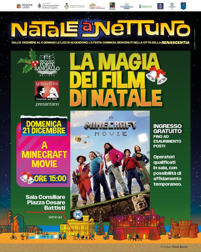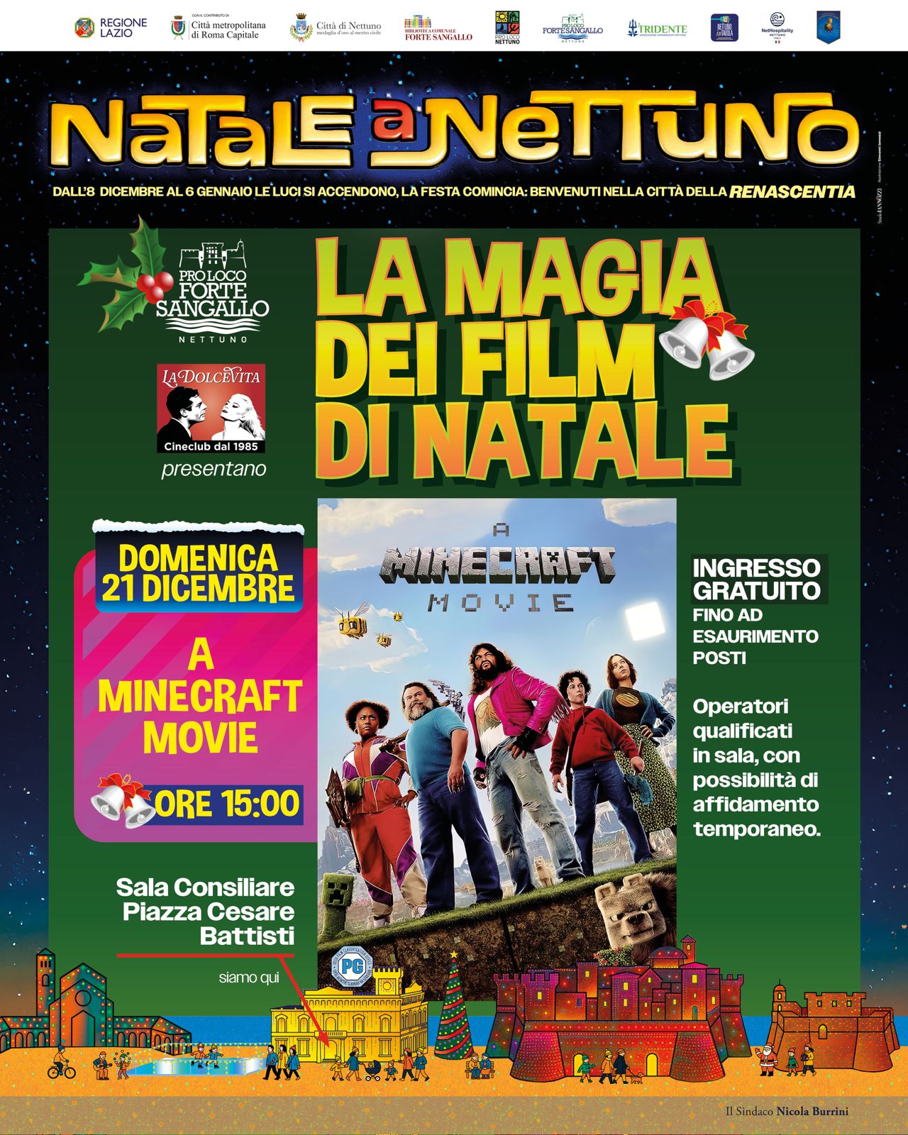 Il primo appuntamento vedrà la proiezione del film “Minecraft Movie” (2025), dando ufficialmente inizio a un calendario di pomeriggi dedicati al cinema, alla condivisione e allo spirito del Natale.