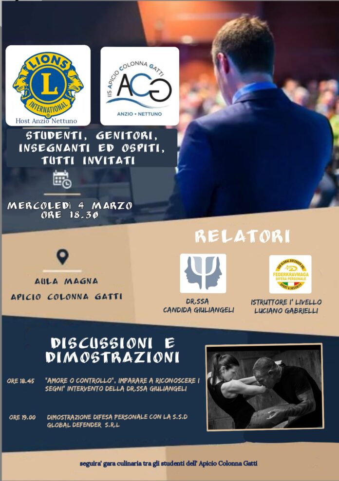 Per rompere il silenzio e costruire una cultura del rispetto, il Lions Club Anzio Nettuno Host e l’IIS “Apicio Colonna Gatti” hanno organizzato un “workshop” che si terrà il 4 marzo 2026, con inizio alle ore 18:30, presso l’Aula Magna dell’Istituto in Via Nerone, 1 – Anzio.